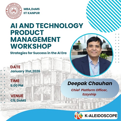 Saturday 31st January 2026 @ 05:00 PM Venue: C5, DoMS Topic: AI and Technology Product Management Workshop: Strategies for Success in the AI Era Speaker: Mr. Deepak Chauhan Designation: Chief Platform Officer, EzzyShip