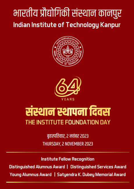 Every year on November 2, the Indian Institute of Technology Kanpur celebrates its Foundation Day, marking the Institute’s remarkable journey of excellence and impact. On this special occasion, an eminent Chief Guest is invited and the Institute honours its alumni and faculty by conferring its most prestigious recognitions across various categories, including Institute Fellows, the Distinguished Alumni Award, the Satyendra K. Dubey Memorial Award, the Distinguished Service Award, and the Young Alumni Award. These awards celebrate alumni who have made outstanding contributions in their respective fields and have brought pride to their alma mater.