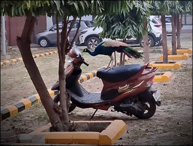 There were many good points too, on campus. We could see numerous peacocks, our national bird, roaming in the grass, sporting crowns on their heads, displaying shiny and brightly coloured feathers. The colors in their feathers – blue, bronze, gold, green, purple and more – changed with the light. Their shrill calls were heard day and night. Some lucky ones caught occasional glimpses of peacocks dancing.