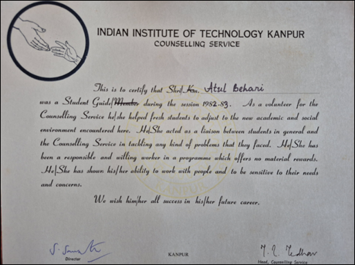 I enjoyed reading about the beginning of counselling service and the people involved. Loved seeing the photos of early years of the counselling service. Especially the photos of Mrs. Rajaraman, Dr. Madhav, Dr. Borwankar, Dr. Yudhbir. I joined IITK in 1980. Dr. Madhav was the head for counselling. Our student counsellors were Neera Tandon (now Singh), and Rema Padman. Their insights and guidance helped us through the first year and the next four years.