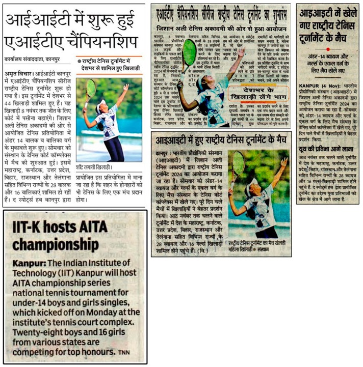 The Indian Institute of Technology Kanpur (IIT-K) is hosting AITA championship series national tennis tournament for under-14 boys and girls singles, which kicked off on Monday at the institute's tennis court complex. The tournament brings together talented young tennis players from across the country.