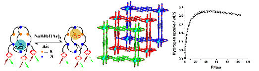 (ii) Coordination Polymers: Research activity in this emerging area of chemistry involves synthesis of coordination polymers and use them to store gases for mobile applications. In addition various other applications such as heterogeneous catalysis, separation of geometrical isomers, magnetism, proton conductance and so on are being investigated. In a major thrust, single-crystal to single-crystal (SC-SC) transformations of coordination polymers for various applications are being probed.