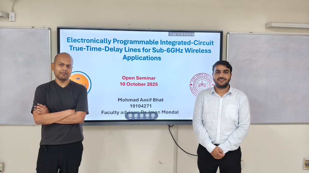 Glimpses from the open seminar delivered by Mohmad Aasif Bhat on programmable true-time-delay integrated circuits for Sub-6 GHz wireless applications.
