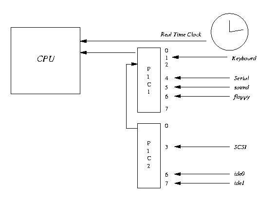 Some of the interrupts in the system may be hard-wired, for example, the real time clock's interval timer may be permanently connected to pin 3 on the interrupt controller. However, what some of the pins are connected to may be determined by what controller card is plugged into a particular ISA or PCI slot. For example, pin 4 on the interrupt controller may be connected to PCI slot number 0 which might one day have an ethernet card in it but the next have a SCSI controller in it. The bottom line is that each system has its own interrupt routing mechanisms and the operating system must be flexible enough to cope.
