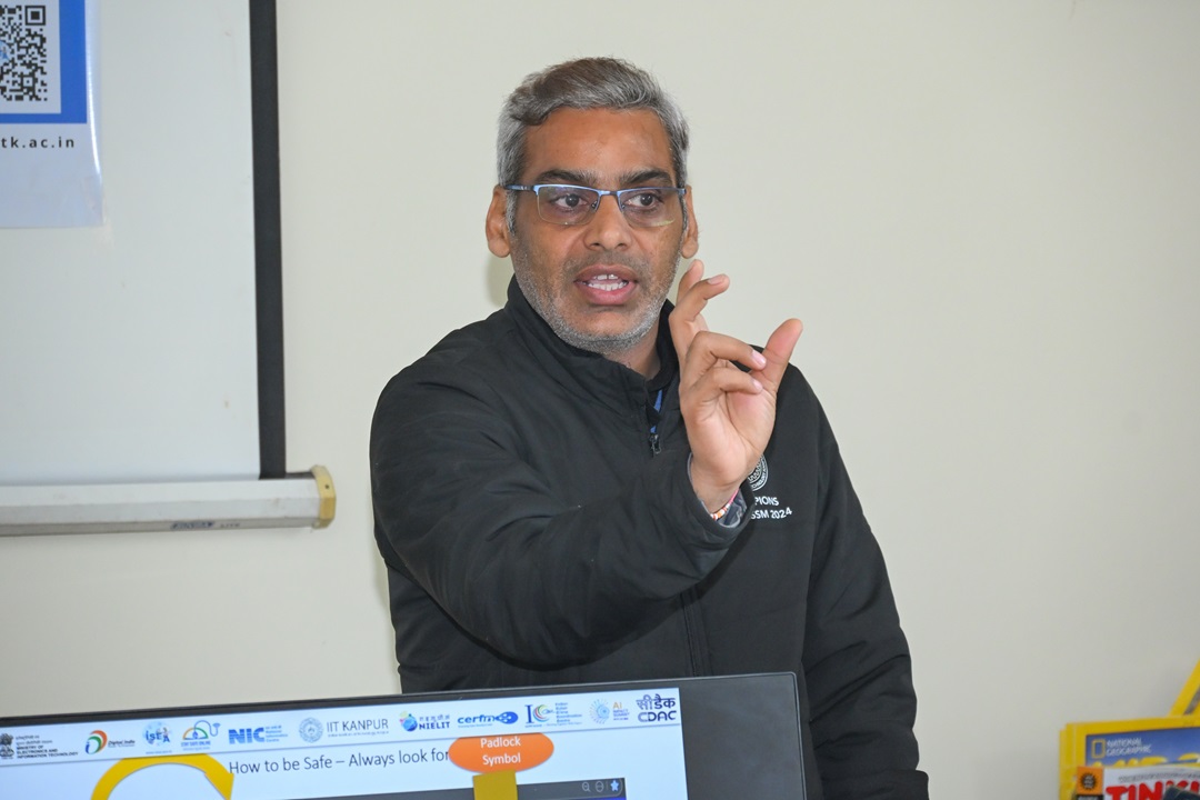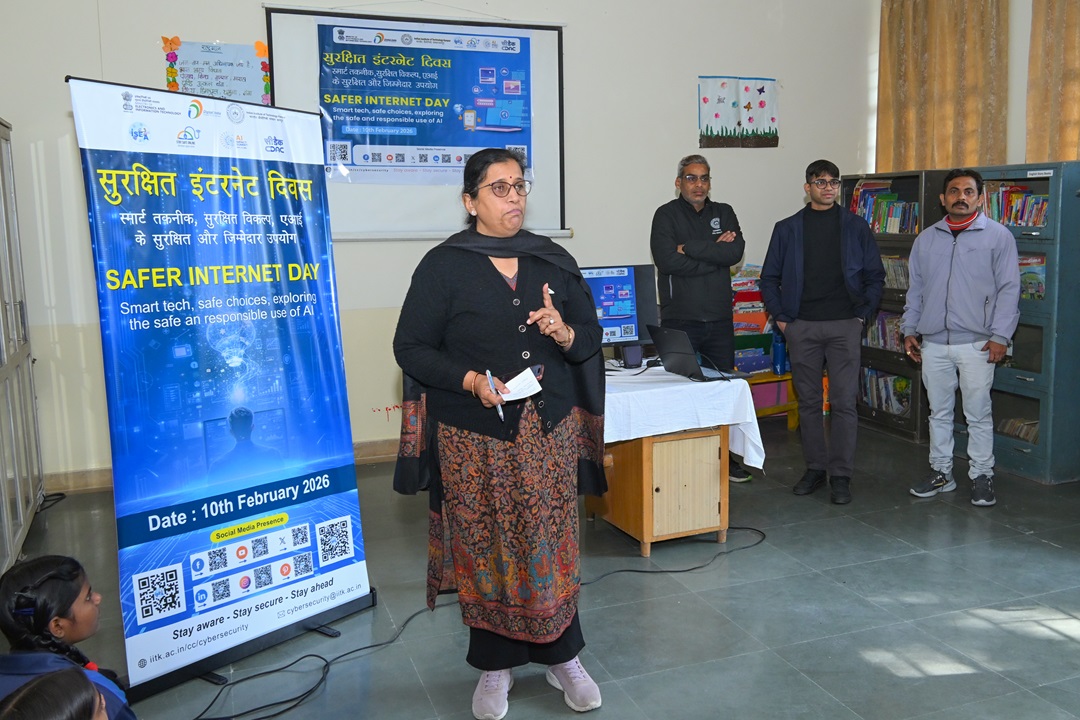 A workshop on cybersecurity, safe internet practices and responsible use of AI was conducted by the Computer Centre, IITK, at Opportunity School, IIT Kanpur, on the occasion of Safer Internet Day. The session, led by the experts Mr Navneet Sharma and Mr Sagar Rana, a member of the cybersecurity team, Computer Centre, IIT Kanpur, witnessed active participation from around 110 students and teachers.