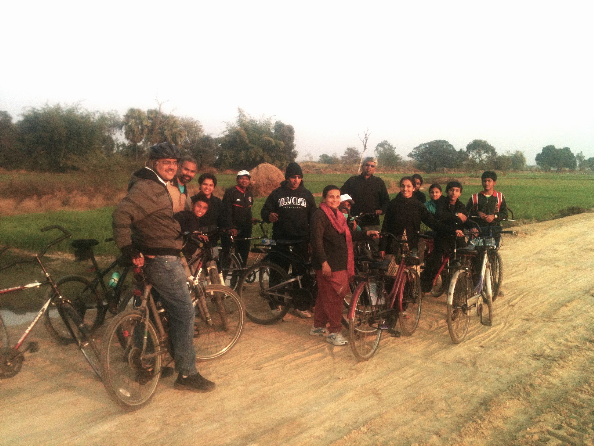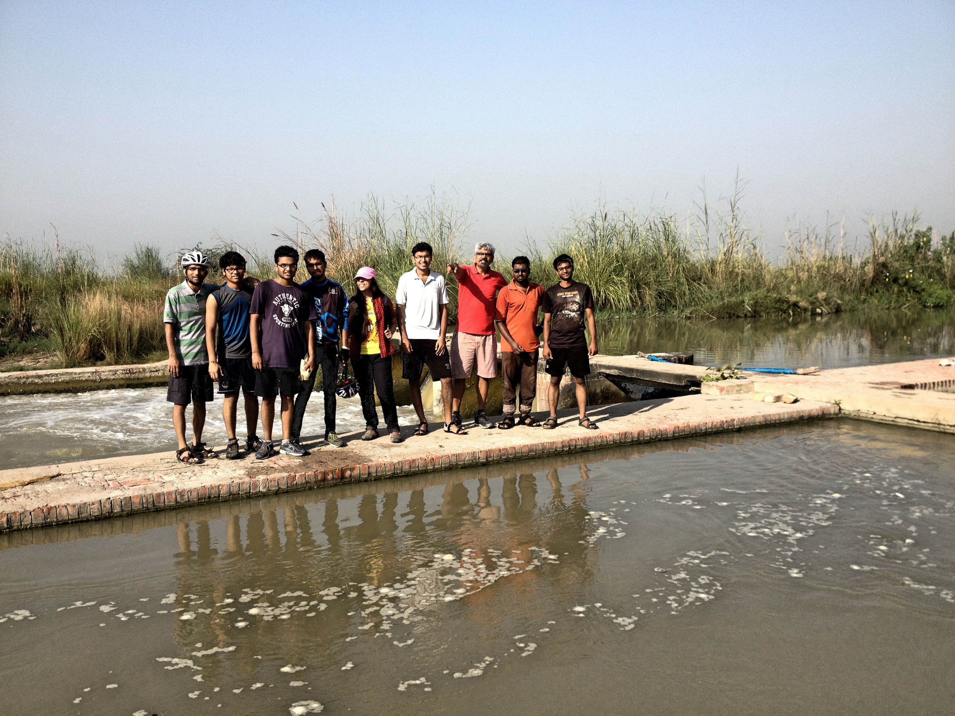 It is a multi-wing expedition with Bantwal leading the procession--after all, his Dad runs Panki. In addition to A-top, there is C-top here, Jake (Priyadarshan Jakatdar) and Ajax (Ajay Mookerjee), Ringy (Rajiv Roy), Tanku (Abhay Shankar). It is an awesome multi-wing procession in white, straggling across the Indo-Gangetic plain. We simply walk out from E-bottom and head for the massive chimney on the horizon. Farmers stop to stare at us. Farm animals move away. Kids interrupt their planting and stand up and gawk. A whole flock of large white birds suddenly lifts off from an adjacent field….it is magical.