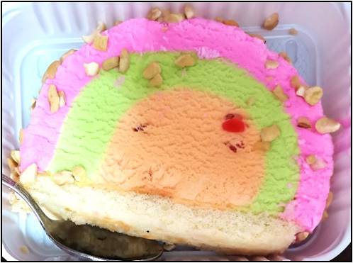 The good stuff came to the Hall 2 mess in a cycle-rickshaw freezer box, which looked more or less like the one in the picture, but more colorful. This freezer held a number of logs of cassata ice cream, which were sliced up and dished out, 10 slices per log, to the salivating youths.