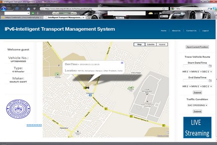 The IPv6 Video Sensors will be installed on the red light crossings to capture the live traffic conditions. The captured video will be transmitted to BSNL Data Centre through IPv6 connectivity provided by BSNL on WiMax/3G/GPRS. The public service vehicles will be installed with an IPv6 Location Sensor based on GPS. The Location of these vehicles can be monitored through IPv6 connectivity provided by BSNL on WiMax/3G/GPRS.