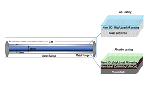 Solar receivers/collectors play an essential role in solar thermal-based hot water heating and cooling systems for buildings, steam generation for various industrial applications, and power production. Solar thermal energy is extensively used in industrial and domestic applications like solar drying operation, space heating, cooling, water heating, desalting of water, etc., by non-concentrated and concentrated solar thermal (CST) systems. The solar receiver tube is one of the critical components in solar thermal technology. The evacuated tube solar collector is the most extensively used solar thermal collector in the market. The development of novel materials with low cost and high solar absorptance is more critical for economic and high-performance solar energy harvesting and thermal energy storage systems.