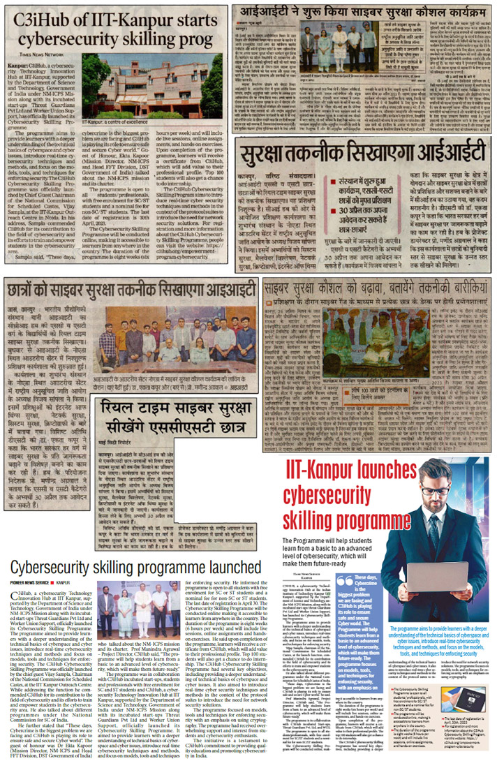32 | 27 Apr 23 | C3iHub, IIT Kanpur launches free Cybersecurity Skilling Program for SC/ST students | Online Web | NA | Bureau | |