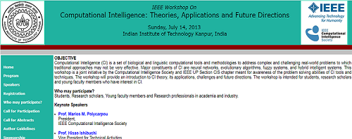 IEEE Workshop On Computational Intelligence: Theories, Applications and Future Directions