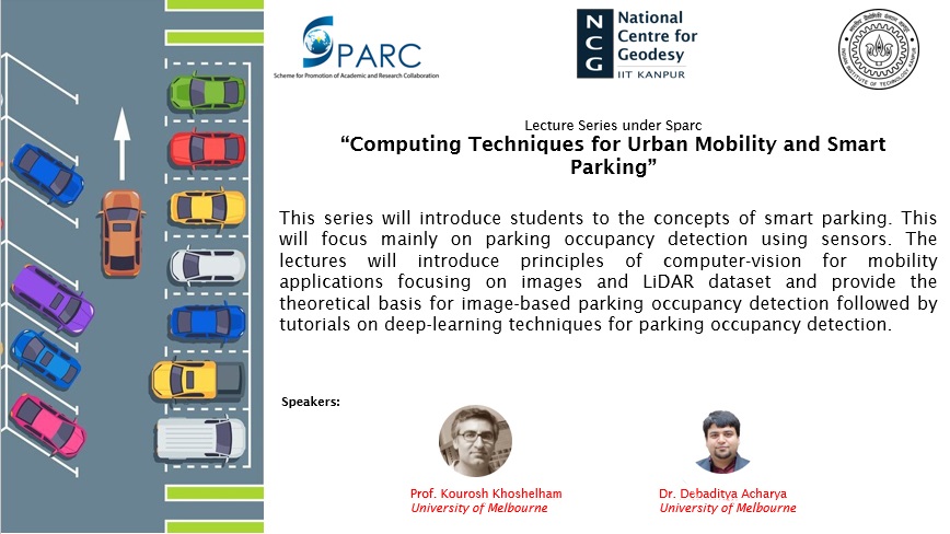1) Future Urban Mobility - Prof. Stephan Winter, The University of Melbourne, Australia 2) IoT, Urban Transportation and Parking spaces - Prof. Partha Chakroborty, IIT Kanpur 3) LiDAR for smart cities - Prof. Bharat Lohani, IIT Kanpur 4) Global Navigation Satellite Systems - Prof. B. Nagarajan, IIT Kanpur 5) Navigation in Urban Environments - Prof. Salil Goel, IIT Kanpur