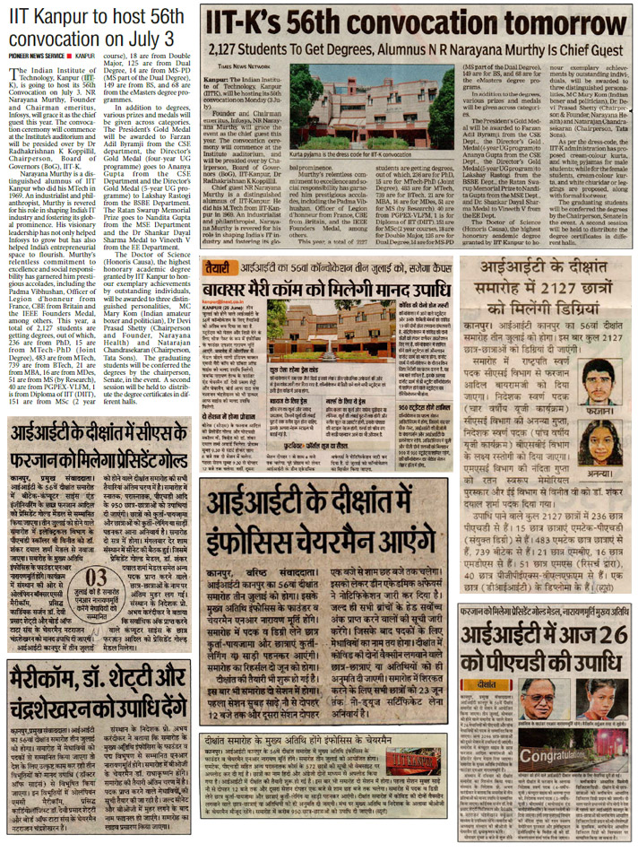 KANPUR : आईआईटी कानपुर 3 जुलाई को 56वें दीक्षांत समारोह की मेजबानी करेगा; एन. आर. नारायण मूर्ति मुख्य अतिथि होंगे