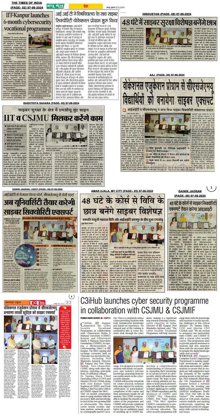 C3IHUB, IIT KANPUR LAUNCHES CYBER SECURITY VOCATIONAL PROGRAM IN COLLABORATION WITH CHHATRAPATI SHAHU JI MAHARAJ UNIVERSITY