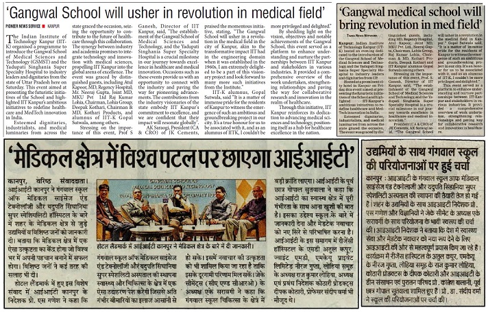 Indian Institute of Technology Kanpur (IIT Kanpur) introduced Gangwal School of Medical Sciences and Technology, and the Yadupati Singhania Super Specialty Hospital to industry leaders and dignitaries from Uttar Pradesh.