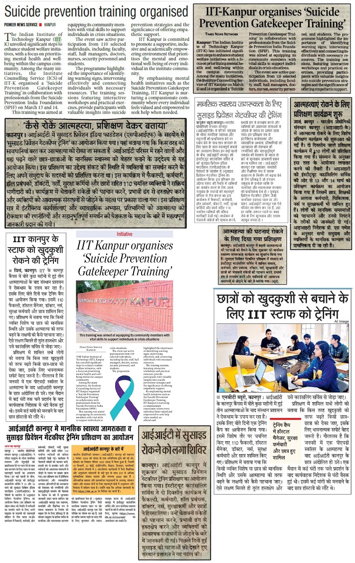 आईआईटी कानपुर ने मानसिक स्वास्थ्य जागरूकता के लिए ‘सुसाइड प्रिवेंशन गेटकीपर ट्रेनिंग प्रशिक्षण का आयोजन किया