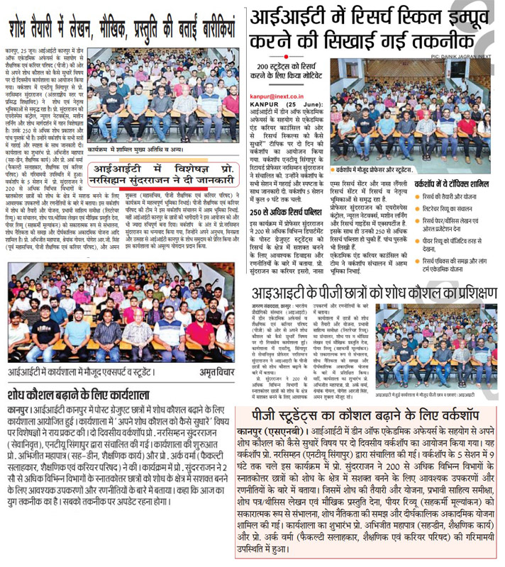 भारतीय प्रौद्योगिकी संस्थान (आईआईटी कानपुर) में दो दिवसीय डीन ऑफ एकेडमिक अफेयर्स के सहयोग से शैक्षणिक एवं करियर परिषद (पीजी) की ओर से अपने शोध कौशल को कैसे सुधारें विषय पर दो दिवसीय वर्कशॉप का आयोजन किया गया।