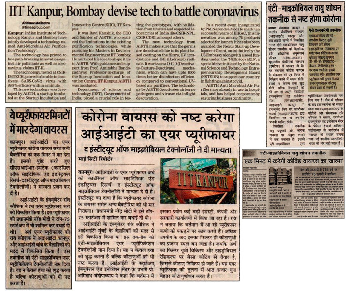 IIT Kanpur and IIT Bombay has jointly developed “Anti-Microbial Air Purification Technology”. The technology has been tested at CSIR-IMTECH and has proven to be able to deactivate SARS-CoV-2 virus with an efficacy of 99.9 per cent within just 1 minute.