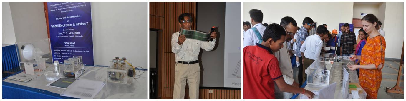 Technology day 2018 was organised by the National Centre of Flexible IElectronics (NCFlexE), IIT Kanpur. Prof. Siddhartha Panda, Coordinator of NCFlexE, delivered the welcome address in the event describing the vision and achievement of the centre. Prof. Abhay Karandikar, Director IIT Kanpur, addressed the audience and elucidated about the technological needs of the country and the appropriateness to have a theme on an emerging technology that can shape the future. Prof. Y.N. Mohapatra delivered a popular lecture titled, “What if Electronics is Flexible”. He mentioned that the emerging flexible electronics based technologies have the potential to impact all aspects of our life and this was enabled by the aspects of printability and flexibility. He described many such novel applications, demonstrated several technologies developed in the Centre including silver filled pens and conducting textiles and described several other technologies being developed such as organic solar cells, organic light emitting diodes, sensors, and thin film transistors. Over 250 school children from the city participated in the event.