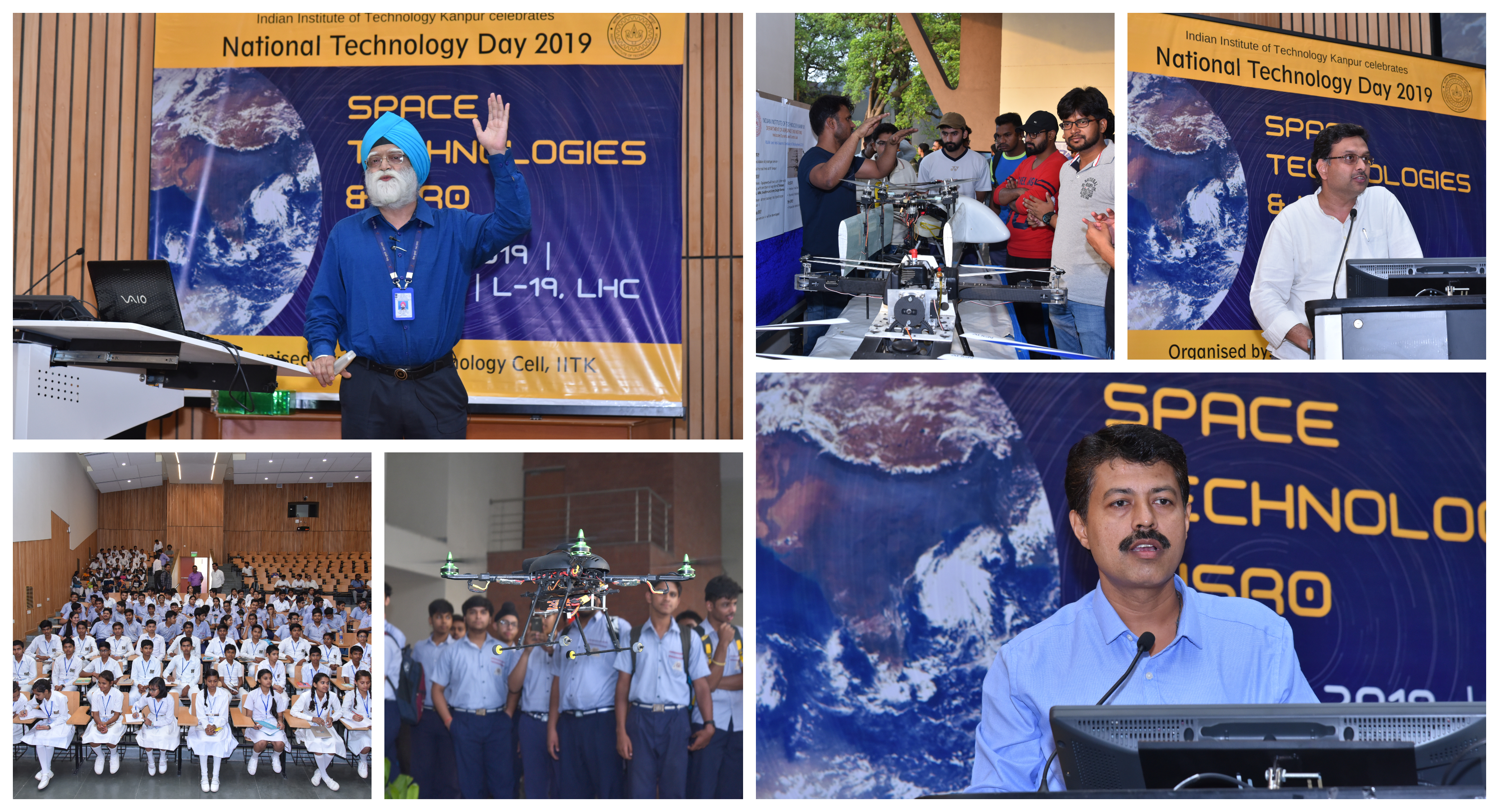 IIT Kanpur celebrated National Technology Day 2019 with a thematic program titled "Space Technologies & ISRO" organized by Space Technology Cell, IITK. A couple of popular talks were delivered by scientists from the ISRO. In keeping with this theme, STC invited two well-known scientists in the field of space technology for presentation. The first talk was delivered by Dr. B.S Munjal, Space Applications Centre (SAC), ISRO. Dr. Munjal spoke on "Technology Applications in Space/Ground Segment of SATCOM Domain". This was followed by a talk by Dr. Mehul R Pandya, SAC, ISRO, who spoke on "Eye in Space for Earth and Planetary Observations". It was followed by the demonstration/display of technologies developed at IIT Kanpur. A group of school children from the city participated in the event.