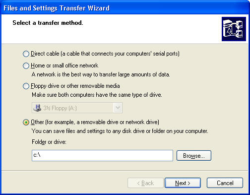 Now on your old PC in C drive you will find a folder USMT2.UNC with 2 files in it. You have to put this folder with the files by any means to your new computer. You may ftp the files to a CC server using WSFTP and then get them back on the new computer. Or you may share a folder on the new computer and access it using net use command and transfer the files directly to your new PC. If the size is less than 700 MB you can burn it on a CDR and put it on the new PC. Having done this move on...