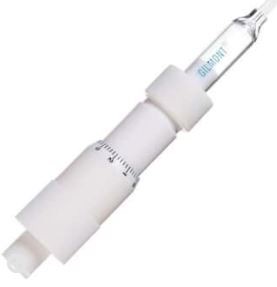 Turn the handle of this dispenser for precise delivery of small volumes. Dispense fluids with an accuracy of ±0.5% of reading or ±1 scale division, whichever is greater. Fluids only come in contact with the borosilicate glass tip, PTFE syringe barrel, and Viton® O-rings. Optional PTFE O-rings are available separately for applications working with harsh chemicals.
