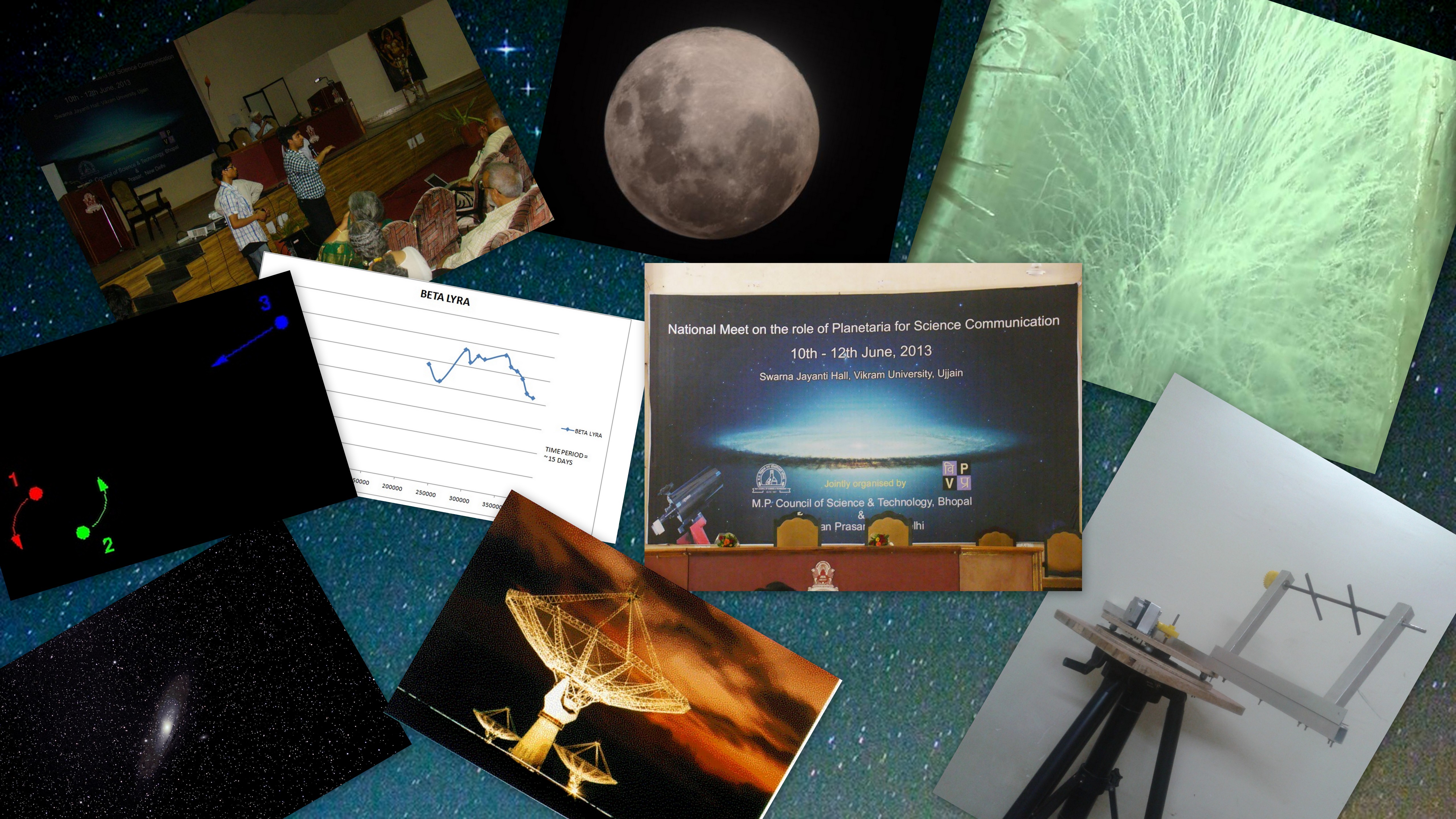 Radio Data Analysis involves analysis of the data collected from finest radio telescopes like GMRT and NASA. This requires the knowledge of Cosmology, Statistical Analysis, Cosmological distances, Radio Astronomy, MATLAB & C. Data will then examined, reviewed, and compared with observations of other Radio analyzing groups. GoTo Binocular Mount is an effort to make an automatic binocular mount that will set itself to the position of star which you wish to see. Helpful when someone doesn’t remember the positions of star. This is an Alt-Az mount controlled by 2 motors which are further controlled by Atmega 16. Stellarium (software which simulates the night sky) API is being used to input the co-ordinates of the desired star.