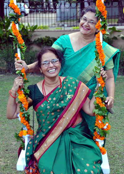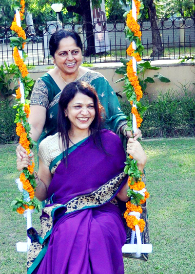 Hariyali Teej was celebrated with big fanfare on 20 august 2016 at the Director's Banglow. The high spirited Teej yesterday was a stamp of IITK- reaffirming our faith that we live on a great campus and we make it lively! Directors Banglow gave a hospitable welcome- the floral alpana, decorated swings & colorful garden made the ambiance party like. Melodious songs by Savita's group, and Soma's group brought out the cultural richness of our campus. Kamini, Anubha, Vandana and Deepa gave the right tang to the party. The beats and rhythm of DJ set the tempo and got everyone to jump to dance. The environment was festive and spirits soared high! Hospitality of Mrs Manna was overwhelming- she not only hosted the party but meticulously oversaw all the arrangements. Her menu selection was great and food tasted fabulous. Thanks to her for being such a loving and charming hostess! Thanks to Vatsala, Geeta, Priya, Aprajita, Savita and others who organised the event. A memorable evening!